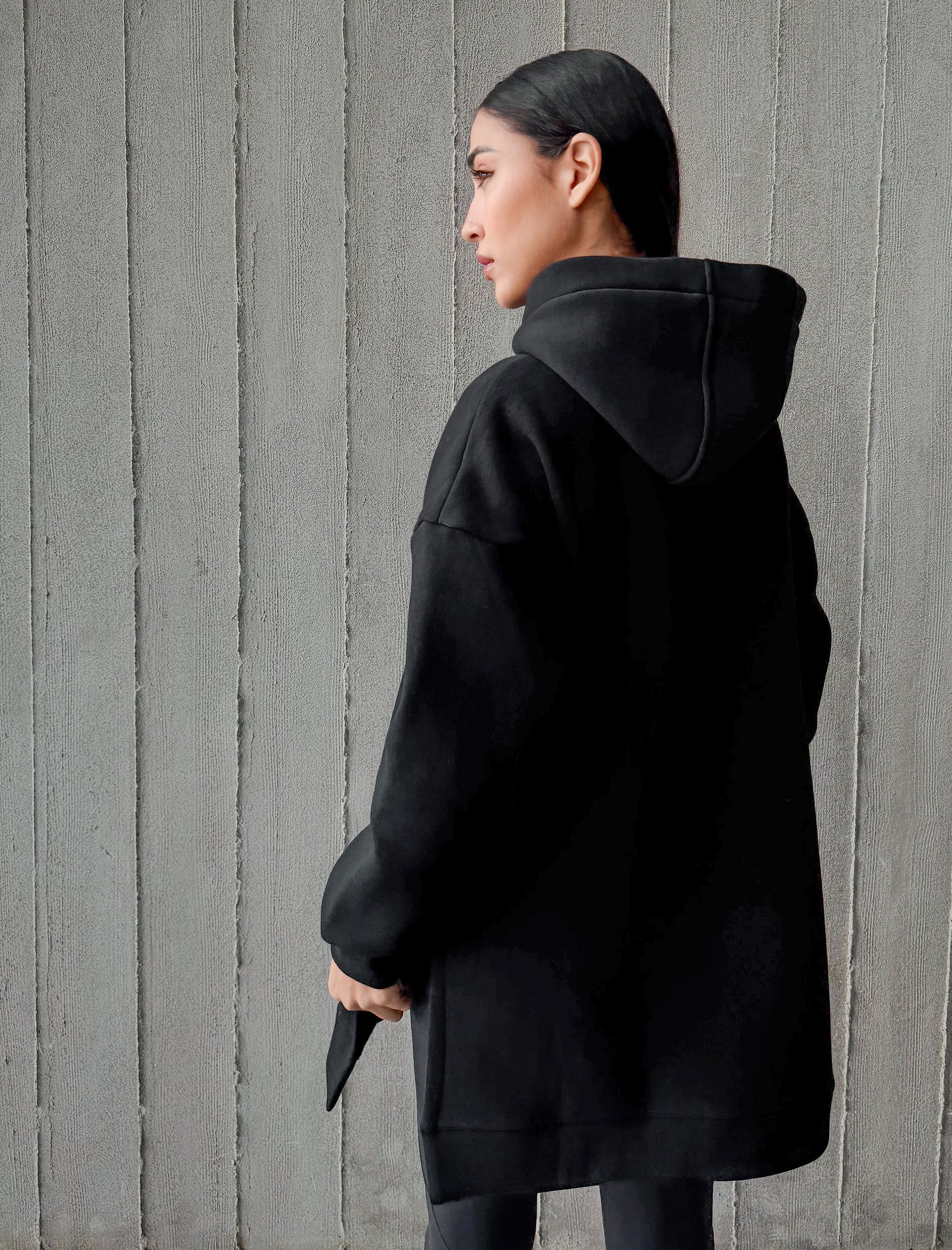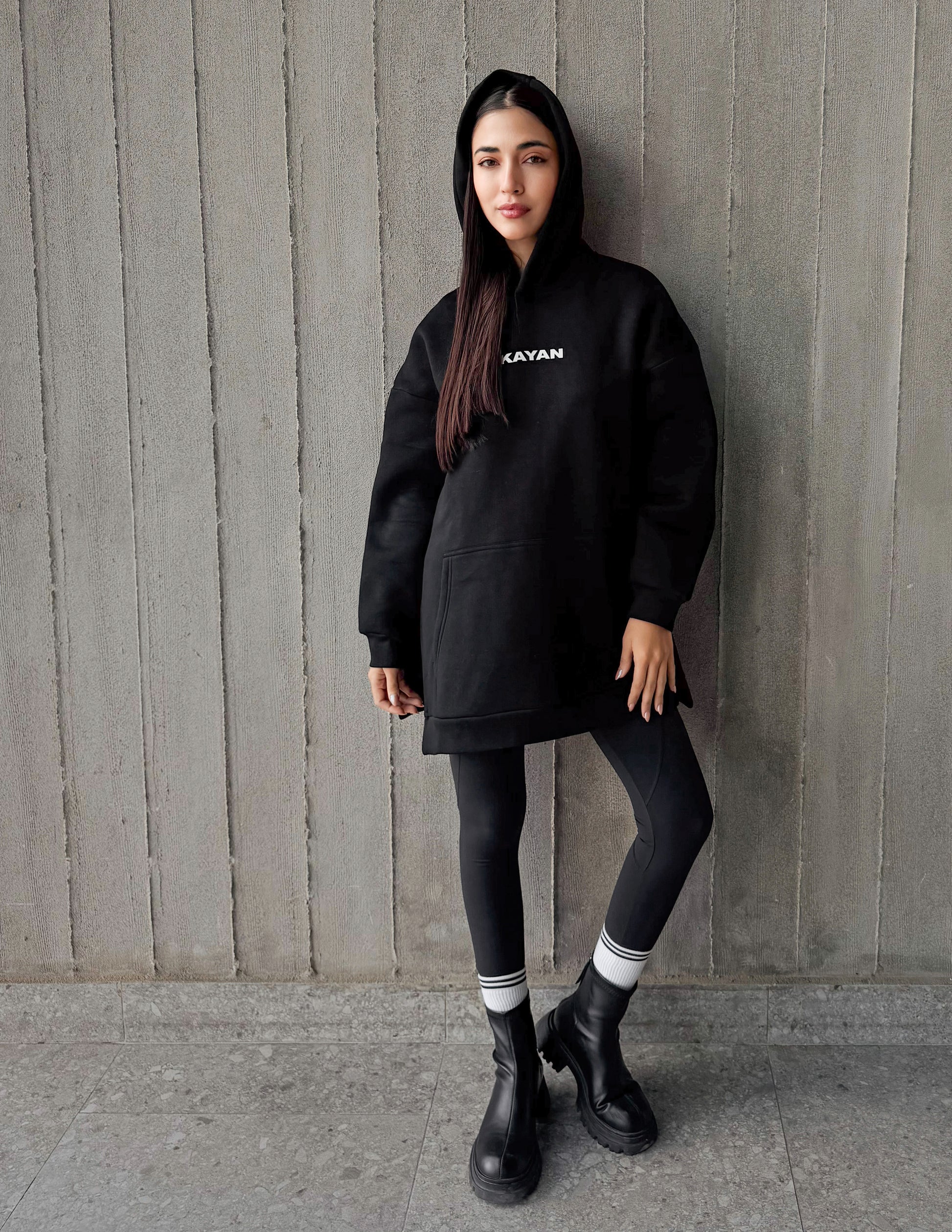 Designed with a relaxed over-sized fit for modest wear offering full coverage and every day comfort, it features a structured large hood that stays in place, a spacious front pocket, and ribbed cuffs for extra comfort. Whether you’re relaxing at home, traveling, or heading out for casual errands, this hoodie is your go-to essential for cooler days.